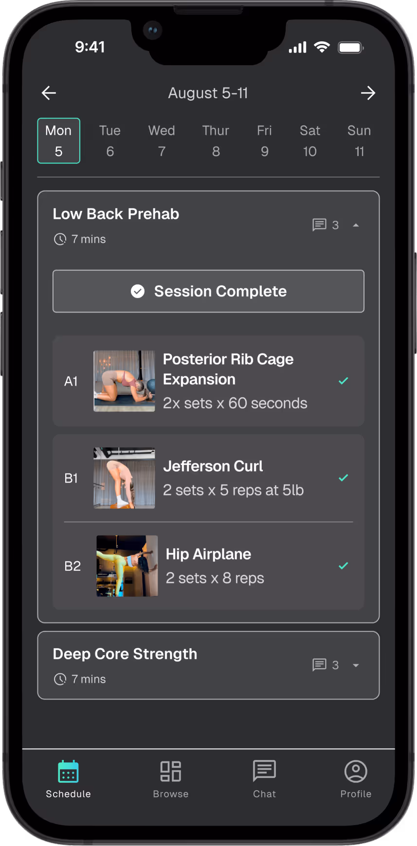 Exercise Library – Curated by experienced online rehab professionals, like Dr. Meghan Sak-Ocbina, this library covers all foundational movement patterns as well as innovative, creative ways to progress movement — going beyond traditionalrehab and training.